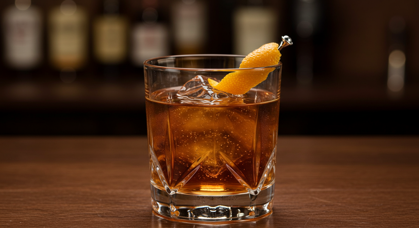 Classic bourbon, Angostura bitters, sugar, and an orange peel.