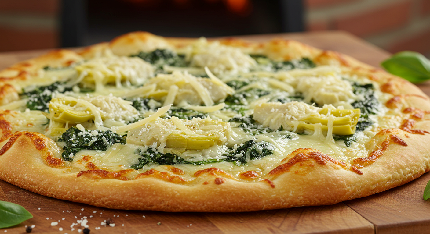 A crispy flatbread topped with a rich spinach and artichoke cream sauce, mozzarella, and Parmesan.